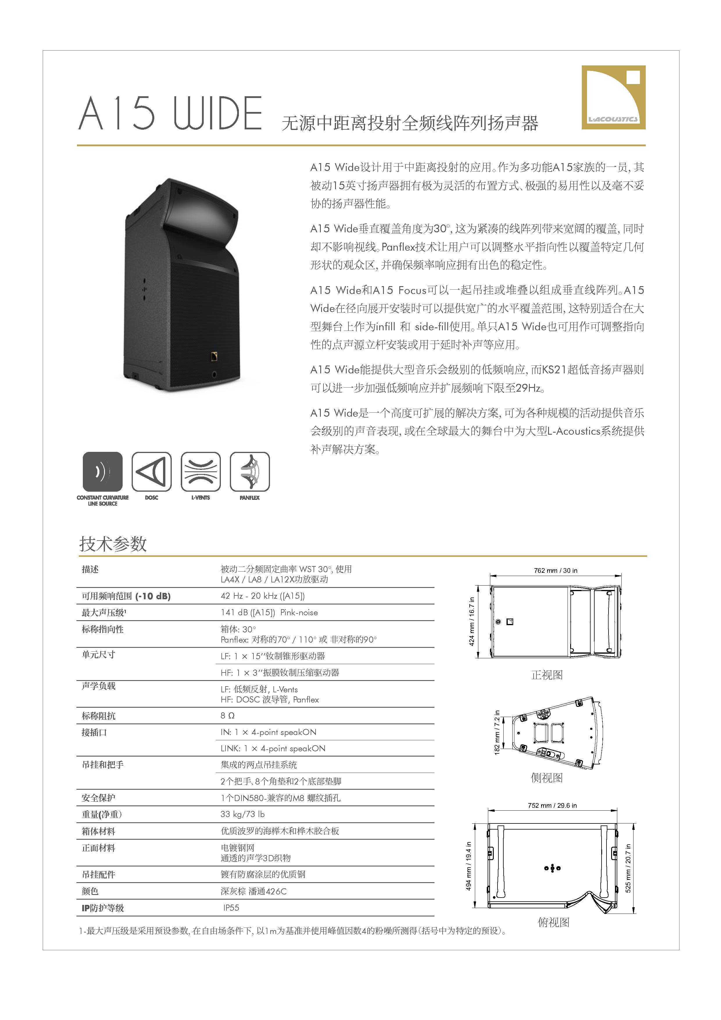 A15产品系列是一个高度可扩展的全能系统——其能为各种规模的活动提 供音乐会级别的声音表现,或在全球最大的舞台中为大型L-Acoustics系统 提供补声解决方案。