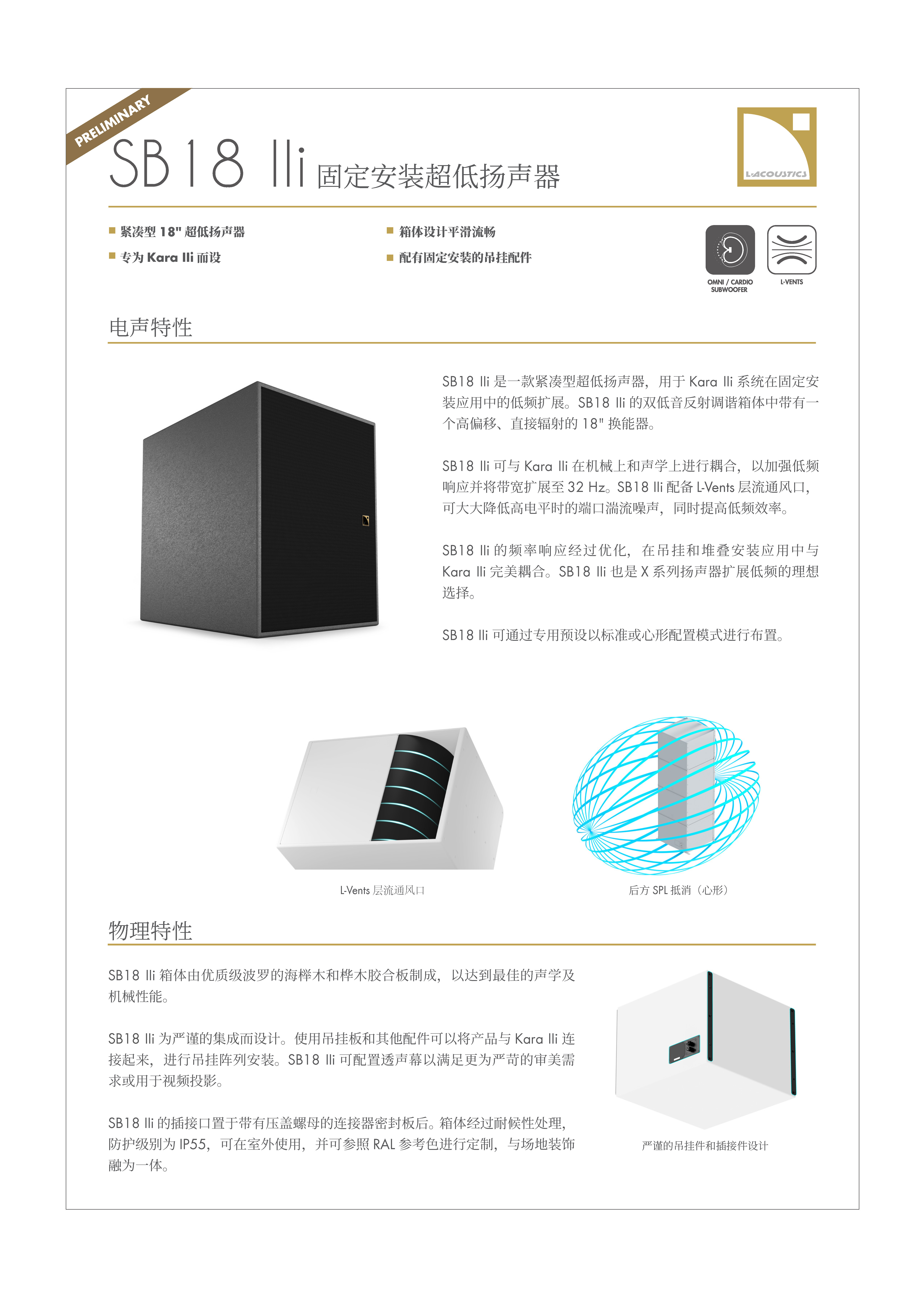 SB18i 箱体的性能取决于预置的选择和系统的物理配置。音箱选材波罗的海高级桦木多层板,与一个