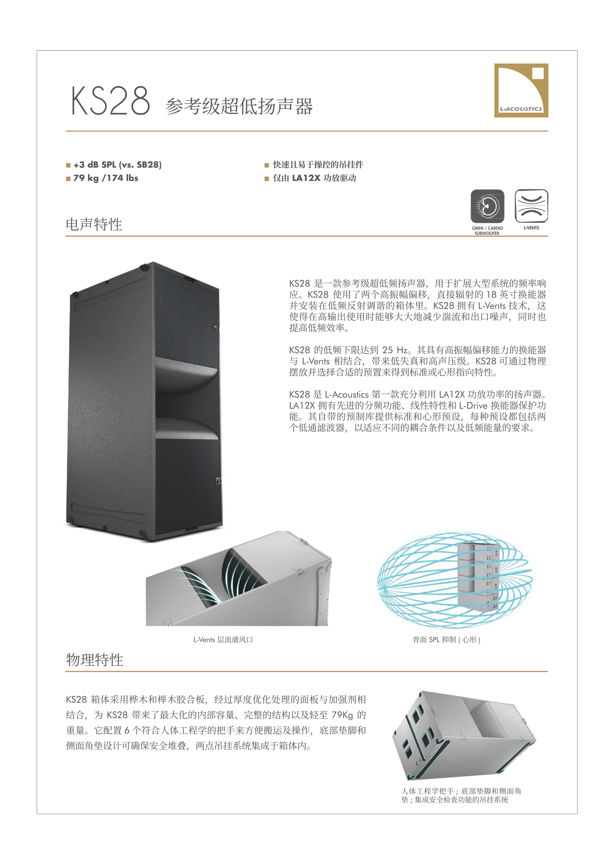 L-Acoustics的超低扬声器能为系统扩展频响带宽。所有的 超低系统拥有高振幅驱动器,超低频震动内壁和L-Vents层 流通风口,采用向外展开结构,显著降低了端口噪声,最大 限度地提高了动态和功率