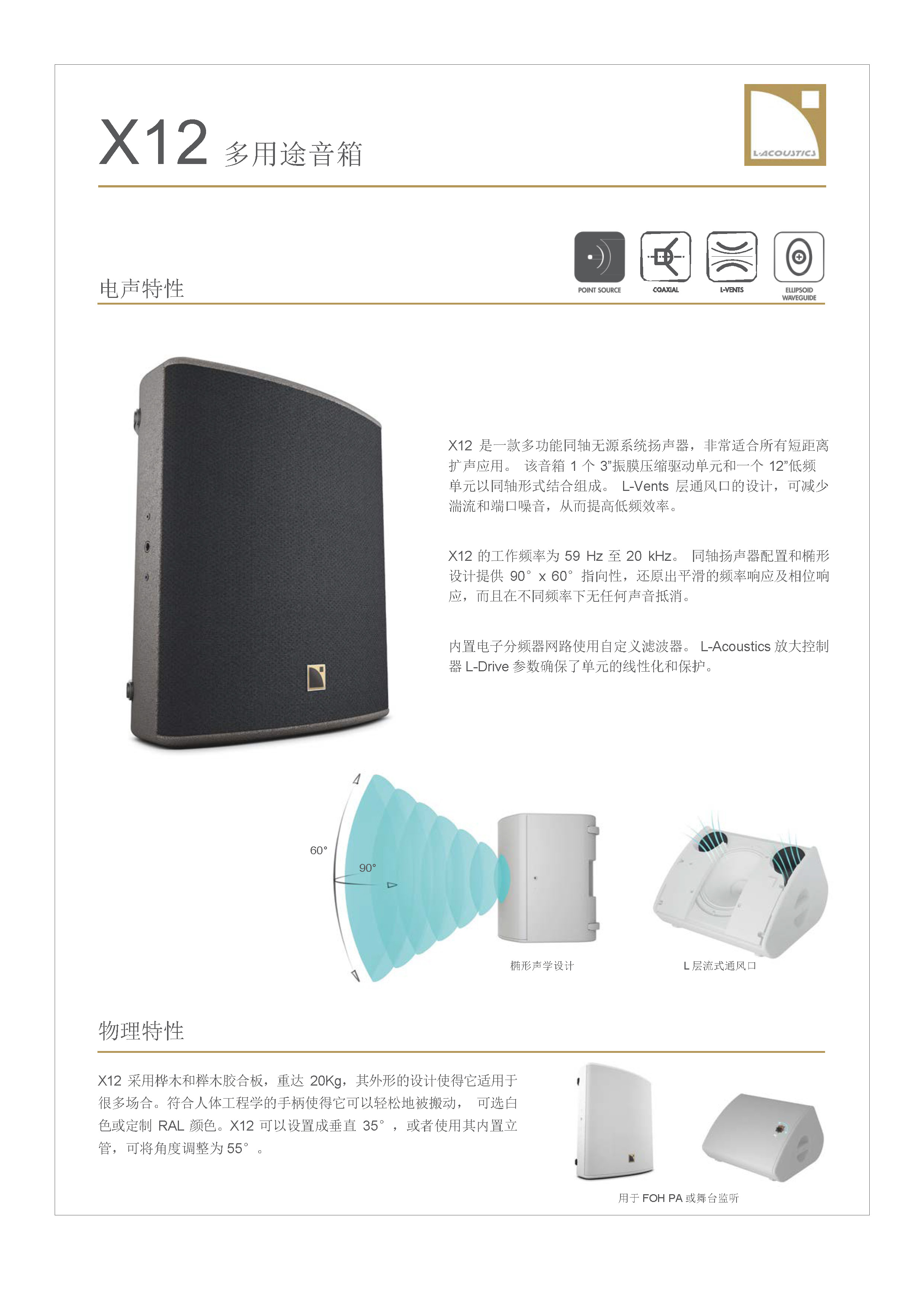 X12的应用基本上是万能的,只要是短距离投射的应用,你都可以选择它。X12可作为多通道的,分布式的或填充式的应用,同时也足够担任舞台监听的角色。